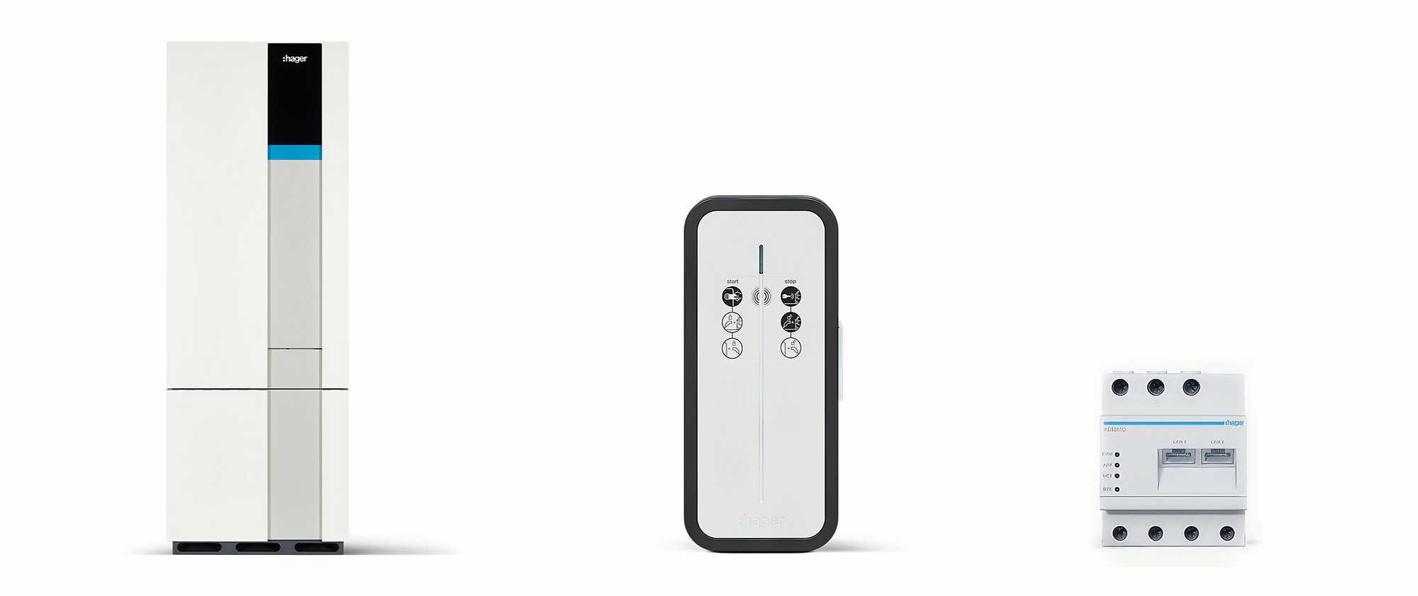 Wir arbeiten mit einem Komplettsystem von Hager: Der Energiespeicher von Hager ist ein Komplettsystem aus: